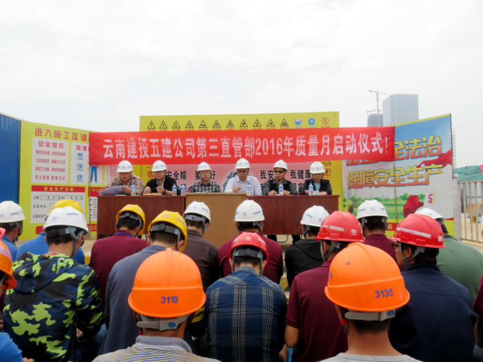 2016年9月14日,五〇七直管項目部承建的官渡區(qū)五里中央商務(wù)區(qū)(CBD)建設(shè)項目A22地塊主體工程施工(一標(biāo)段)開展“質(zhì)量月”活動。 活動中,直管部質(zhì)量科長張劍宣讀了公司關(guān)于開展2016年“質(zhì)量月”活動的通知,以及五〇七直管項目部2016年質(zhì)量月活動方案,傳達了直管部關(guān)于培訓(xùn)學(xué)習(xí)技術(shù)規(guī)范的計劃。項目技術(shù)負(fù)責(zé)人楊濤就公司關(guān)...