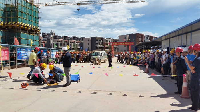 6月25日下午15點(diǎn),由五〇三直管項(xiàng)目部施工的楚雄陽光花園小區(qū)三期保障性住房項(xiàng)目部開展消防演練。楚雄市住房和城鄉(xiāng)建設(shè)局副局長趙興副和楚雄市住建局工程質(zhì)量安全監(jiān)管科副科長申宇等,帶領(lǐng)楚雄市多個在建工地人員150余人,到由演練現(xiàn)場參觀學(xué)習(xí)。 本次演練的科目包括機(jī)械傷害、觸電事故、物體打擊、消防救援四個科目。整個演練模擬了事故發(fā)...